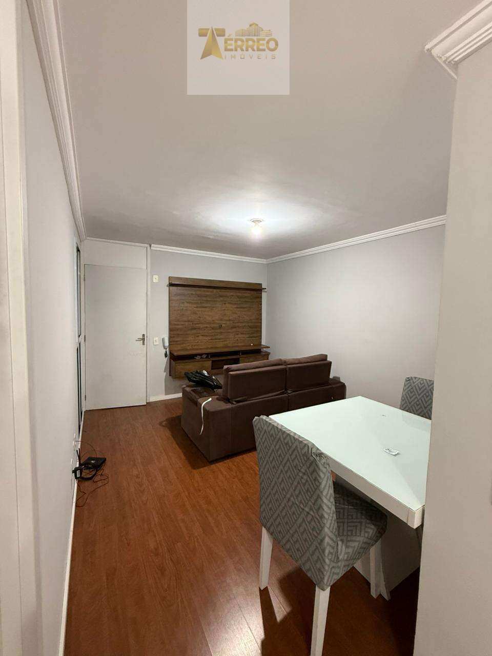 ?com pisos laminado, todo pintado, móveis planejados na cozinha (cooktop, forno elétrico, sugar), móvel no banheiro, quarto com guarda roupa casal, ar split, persiana romana, outro quarto com ar de caixa, sala com mesa, sofá e painel de tv.