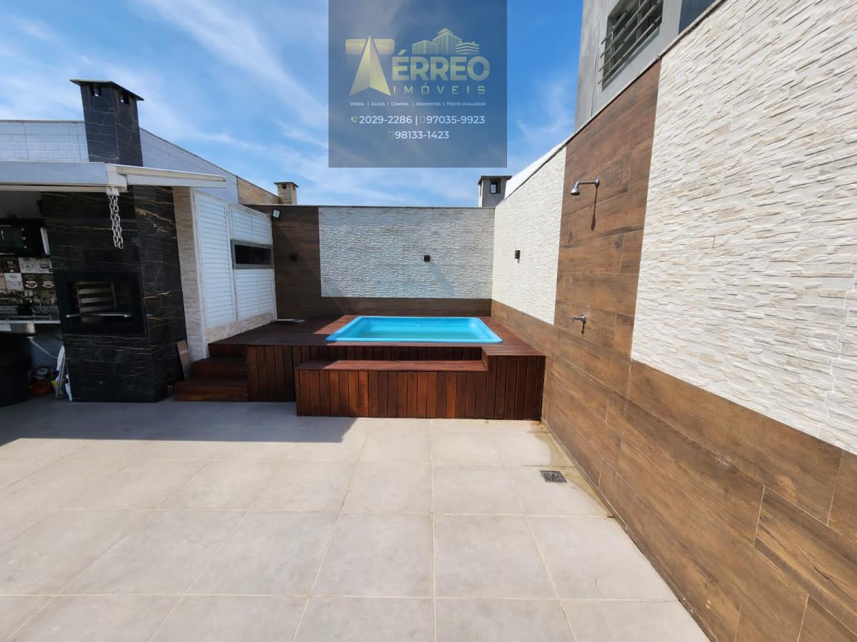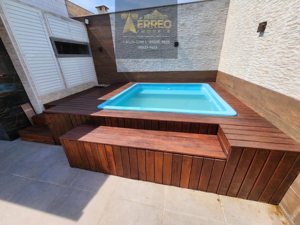 Piscina e churrasqueira.