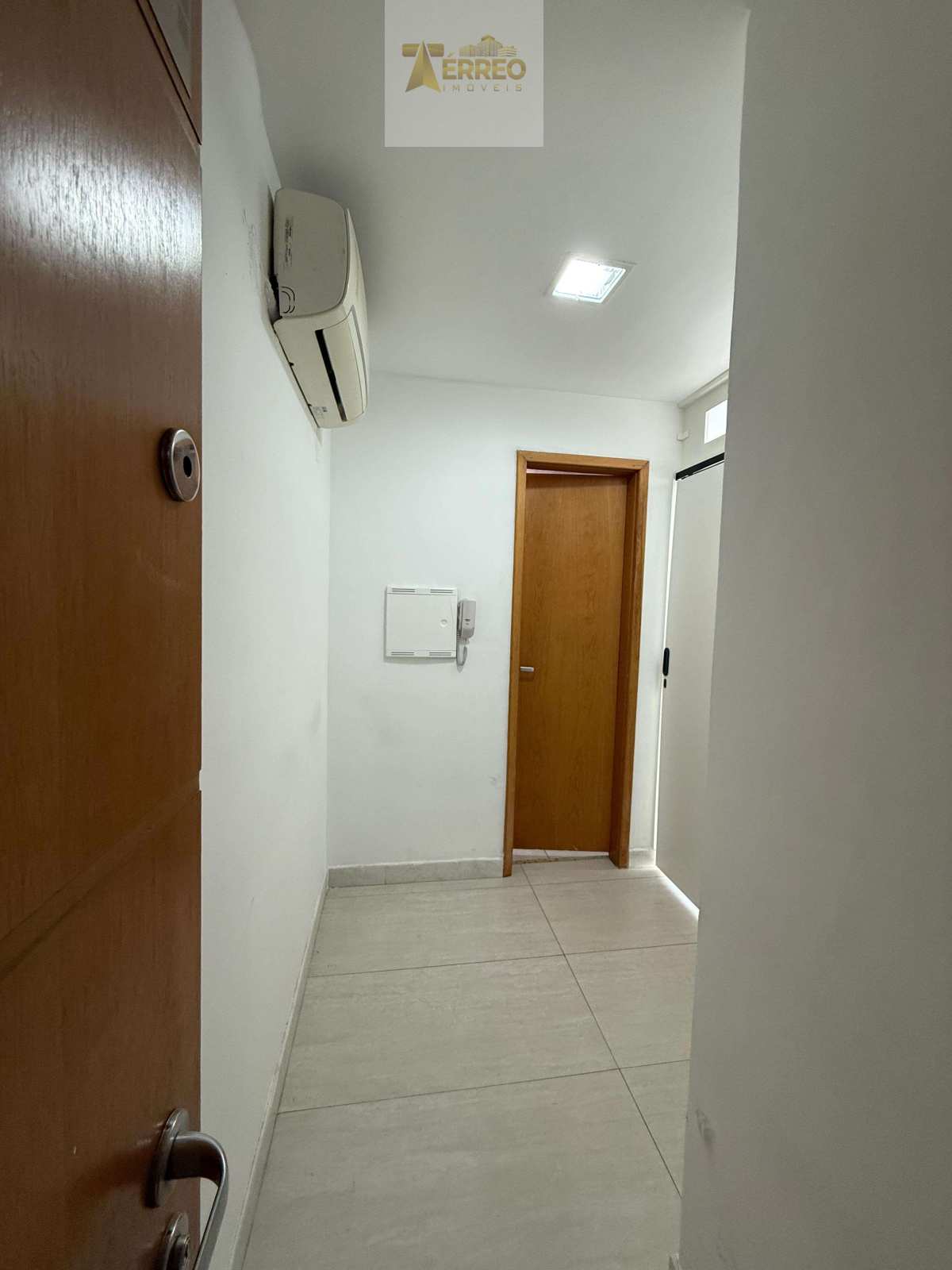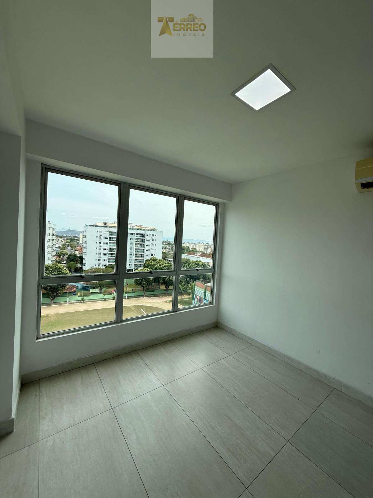 ?A sala contém recepção com ar e divisória.
